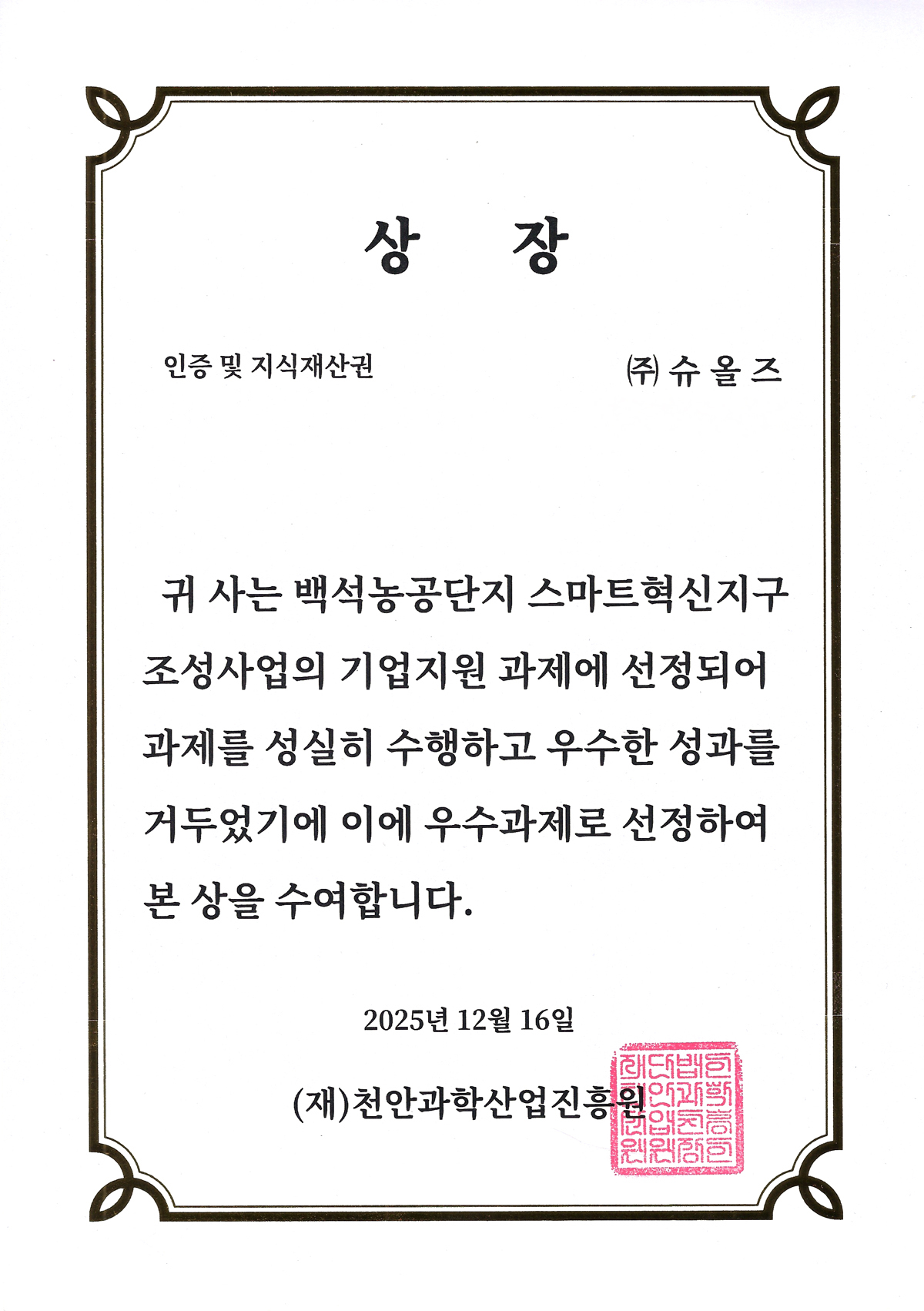 천안과학산업진흥원 스마트혁신지구 조성사업 우수과제 수상