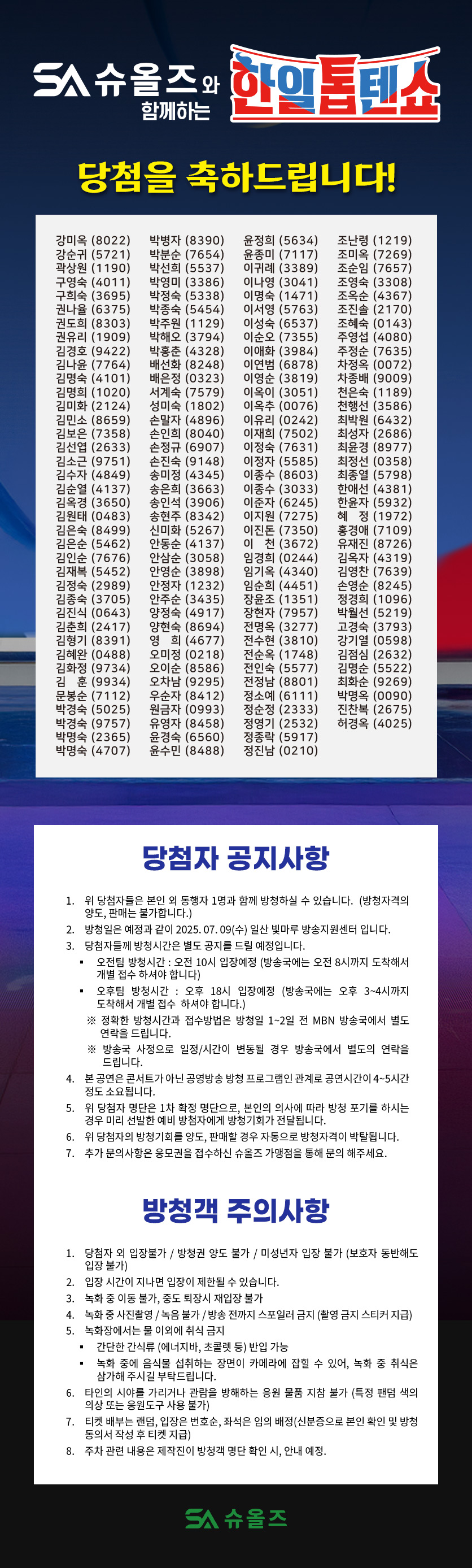 슈올즈와 함께하는 한일톱텐쇼 방청명단