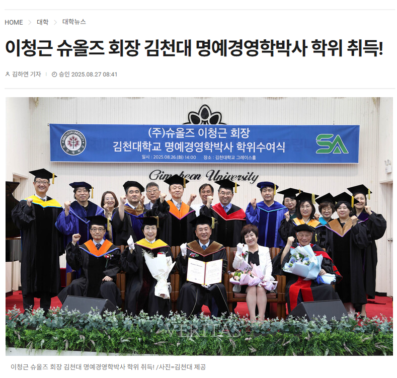 이청근 슈올즈 회장 김천대 명예경영학박사 학위 취득!