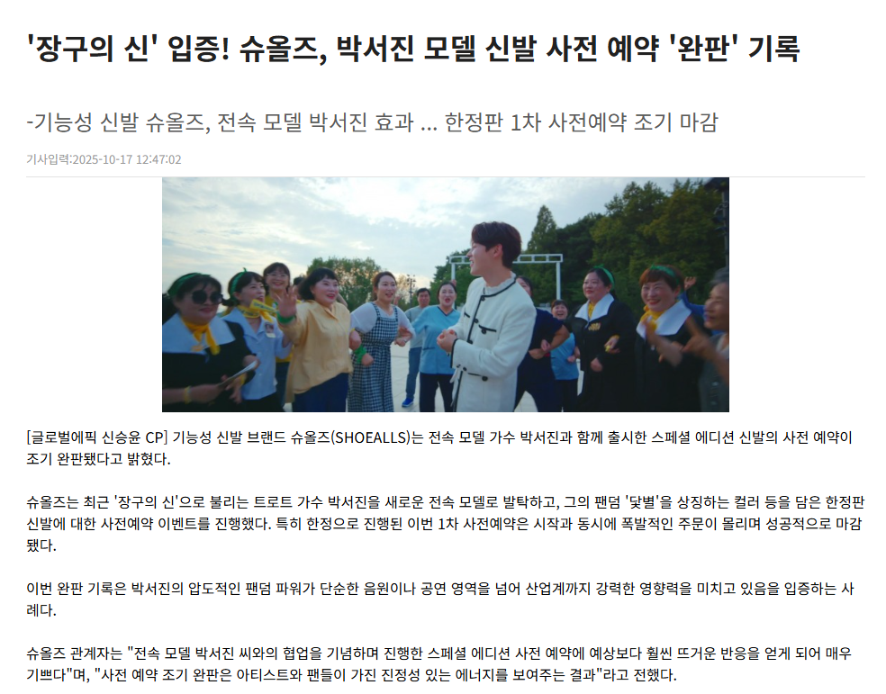 '장구의 신' 입증! 슈올즈, 박서진 모델 신발 사전 예약 '완판' 기록
