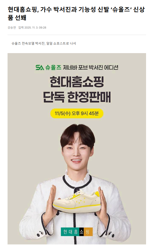 현대홈쇼핑, 가수 박서진과 기능성 신발 ‘슈올즈’ 신상품 선봬